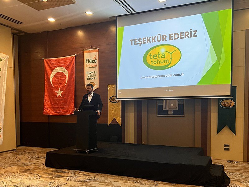 Programın devamında, CEO’muz Endüstri Mühendisi Harun Bozok, Teta Tohumculuk’un ürün portföyünü kapsamlı biçimde tanıtarak; ürünlerimizin özellikleri, verim potansiyeli ve sahadaki performanslarına ilişkin detaylı bilgiler paylaştı. Sunumun ardından katılımcılardan gelen sorular yanıtlandı.